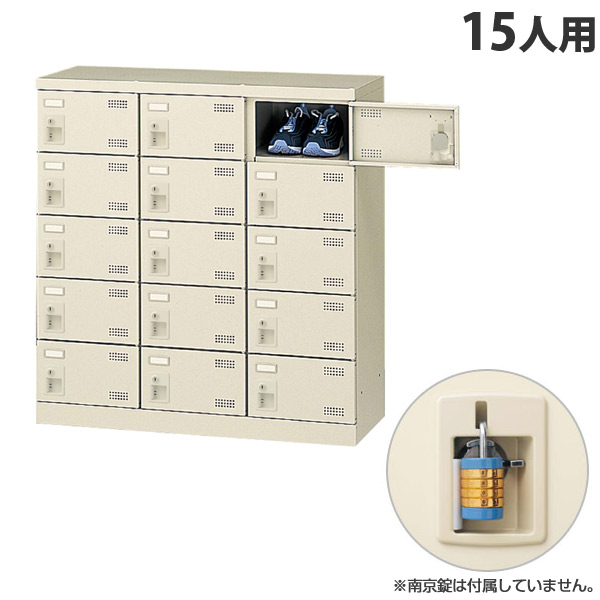 ■『代引不可』生興 SLBシューズボックス 3列5段 15人用 南京錠用 W900×D350×H945mm SLB-M15-N2 『返品不可』『送料無料(一部地域除く)