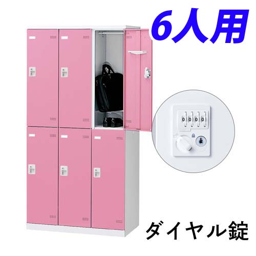 ■『代引不可』『受注生産品』生興 SLBロッカー(扉ピンク) 6人用 ダイヤル錠 W900×D515×H1800mm SLBP-6-D2『送料無料(一部地域除く)』