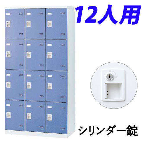 ■『代引不可』『受注生産品』生興 SLBロッカー(扉ブルー) 3列4段 12人用 シリンダー錠 W900×D515×H1800mm SLBB-12-S2『送料無料(一部地