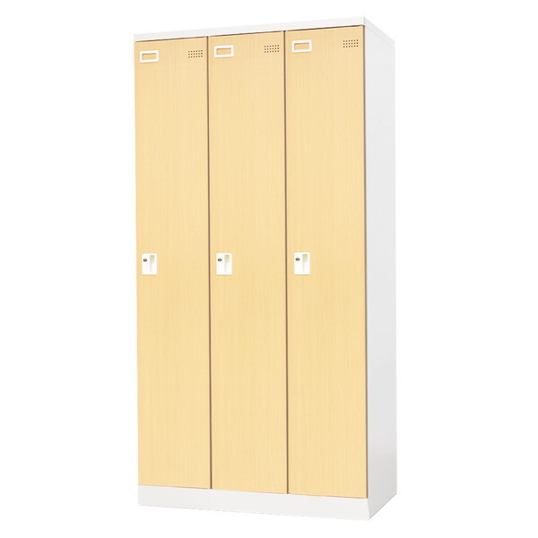 ■【法人限定】 Netforce EA-3-SC-W-NA ホワイト×ナチュラル [スチールロッカー 3人用 シリンダー錠 木目 3列1段] メーカー直送