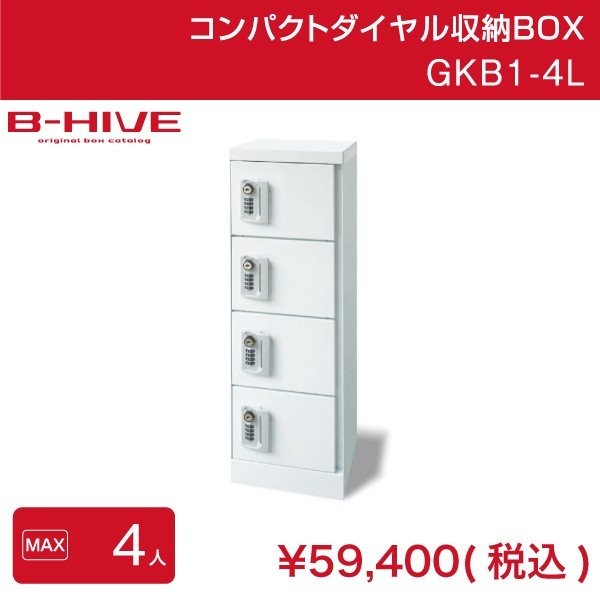 ■コンパクトダイヤル収納BOX GKB1-4L B-HIVE 4人用 鍵付きロッカー 業務用 収納棚 送料無料 本州・四国・九州限り