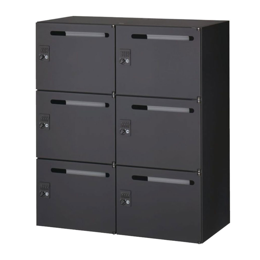 ■『代引不可』スチールロッカー 鍵付 6人用メールボックス ダイヤル錠 下置用 ブラック RK45-610P-D3 W900 クウォール 生興