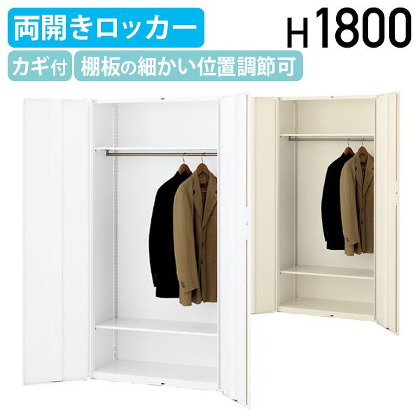 ■両開きロッカー KW45シリーズ ベース付き W900 D450 H1800 スチール 錠付き ラッチ付き ハンガーパイプ付き 棚板付き 法人宛限定 代引不