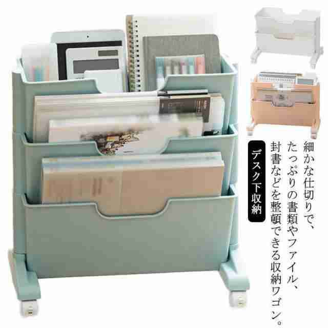ファイルワゴン キャスター付 デスク下収納 2段 3段 斜め棚 仕切り オフィス デスク下 机下 ファイル 収納ラック 本棚 取り出しやすい A4