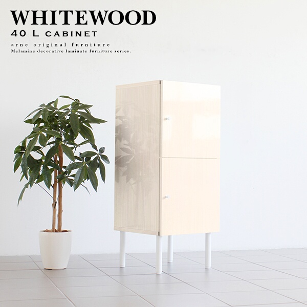■キャビネット デスクサイド 鏡面 おしゃれ ホワイトウッド 扉付き 本棚 キッチン収納棚 whitewood 40L cabi ☆