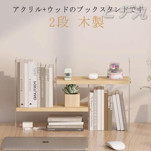 おしゃれなアクリル+ウッドデザイン!ブックスタンド 2段 シェルフ 卓上 本立て 卓上本棚 整頓 卓上ラック 本棚 整理 整理 飾る 見せる 収納 木製