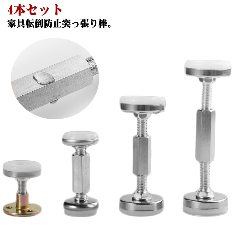■ステンレス 家具転倒防止 家具 短い つっぱり棒 4本セット 突っ張り棒 本棚 耐震ポール 家具転倒防止突っ張り棒 タンス 転倒防止 テーブ