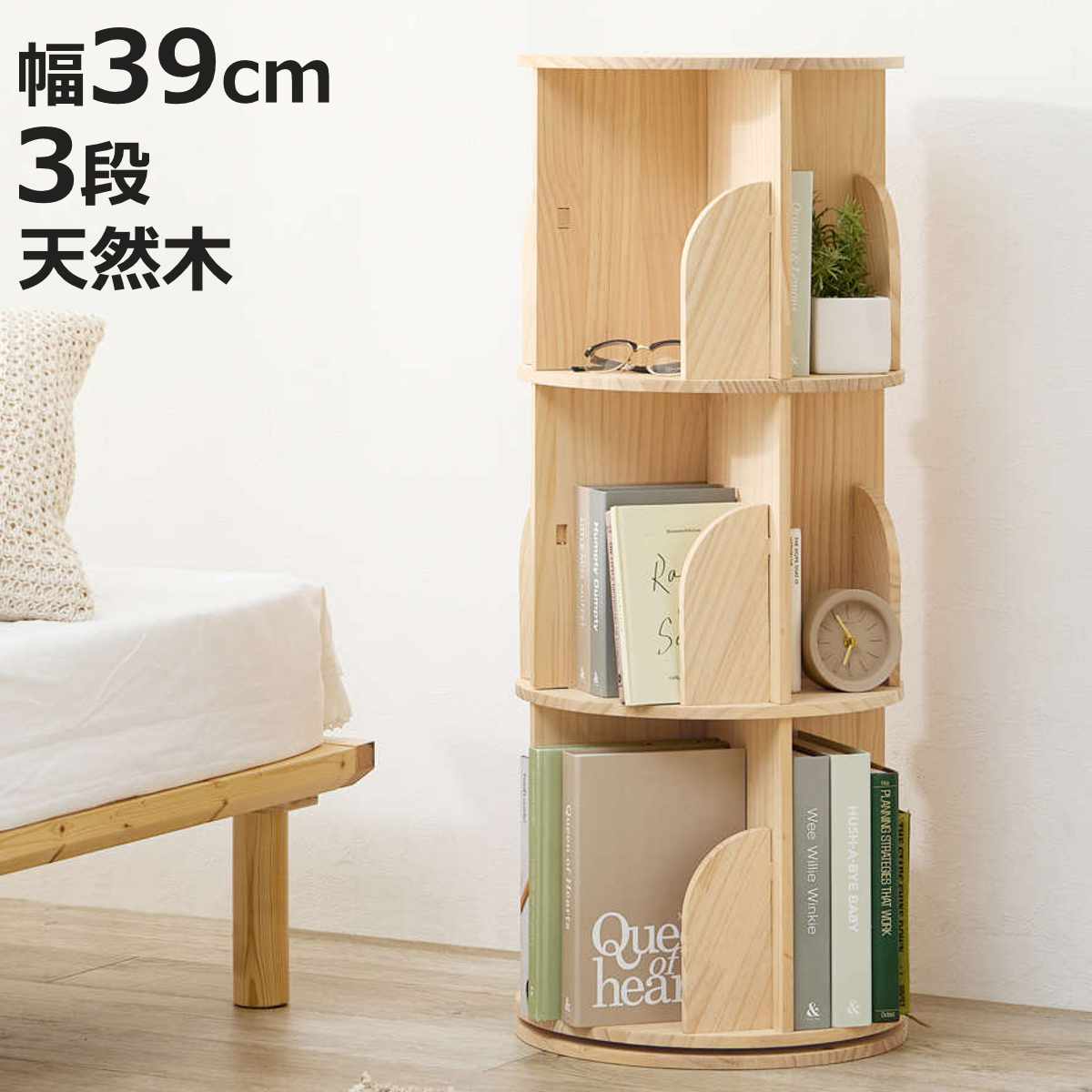 ■回転式 コミックラック 3段 幅39cm 108冊収納 天然木 簡単組立 ( 本棚 ラック 回転 タワー型 組み立て簡単 回転ラック 木製 ブックラッ