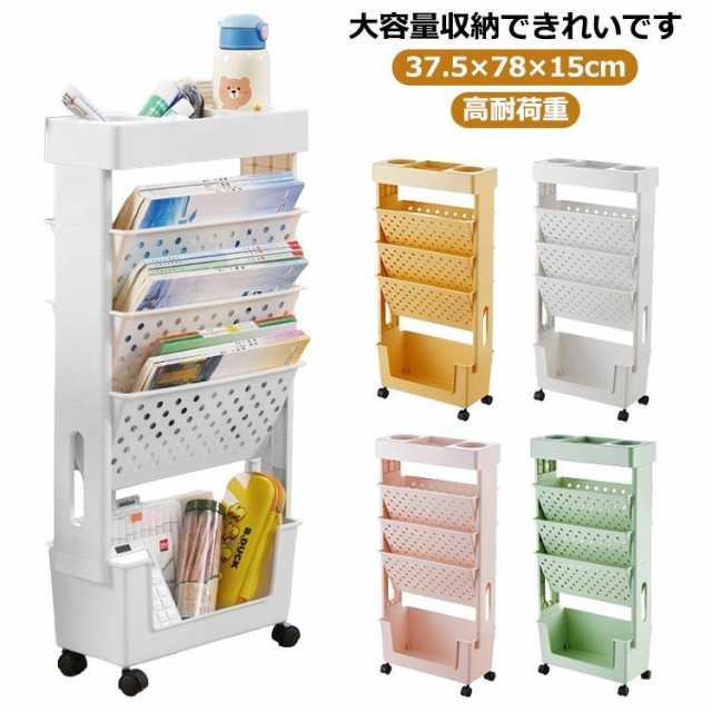 スリム ファイルワゴン 書類収納ワゴン キャスター付き キャスター 5段 スリム 北欧 本棚 大容量 マガジンラック デスクサイド収納 収納棚 文具
