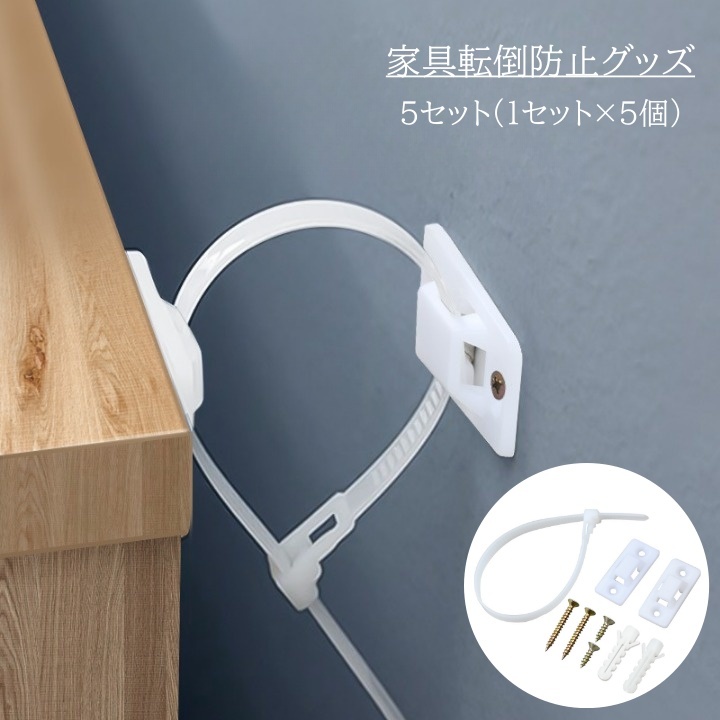 ■家具転倒防止グッズ 5セット 地震対策 家具 壁面固定 壁 固定 金具 セーフティーグッズ 安全対策 災害対策 防災用品 本棚