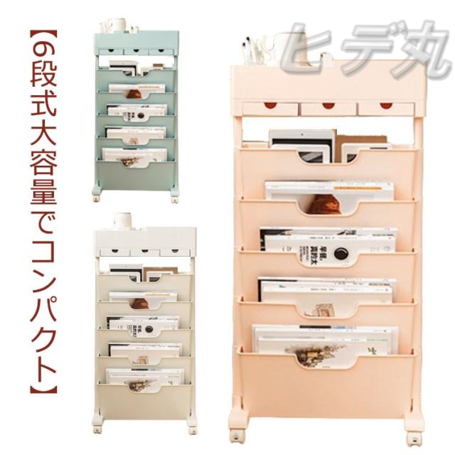 ■キャスター付き ブックスタンド ファイルワゴン 本棚 サイドワゴン 書類棚 本棚 絵本 収納棚 引き出し 5層 大容量 雑誌収納 ワゴンラッ