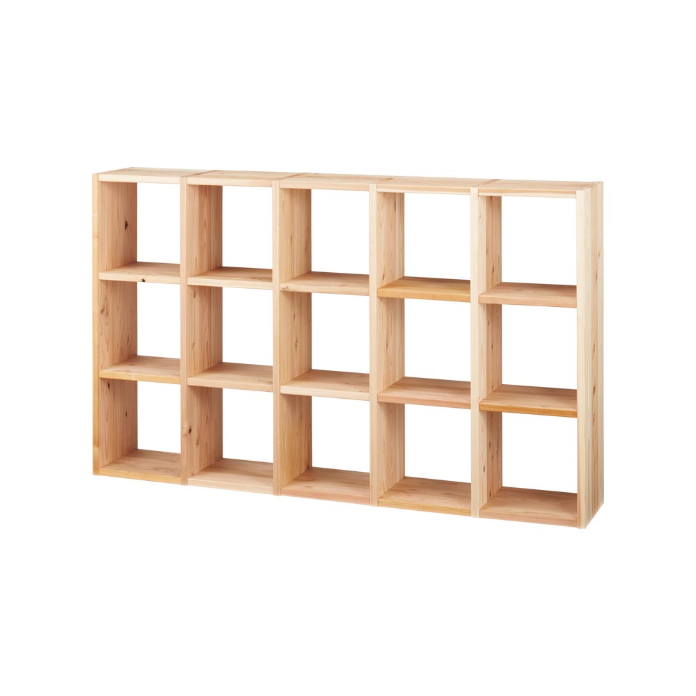 ■国産杉シェルフ 横5列×縦3段(幅184cm高さ111.5cm) 本棚 ラック シェルフ 626312