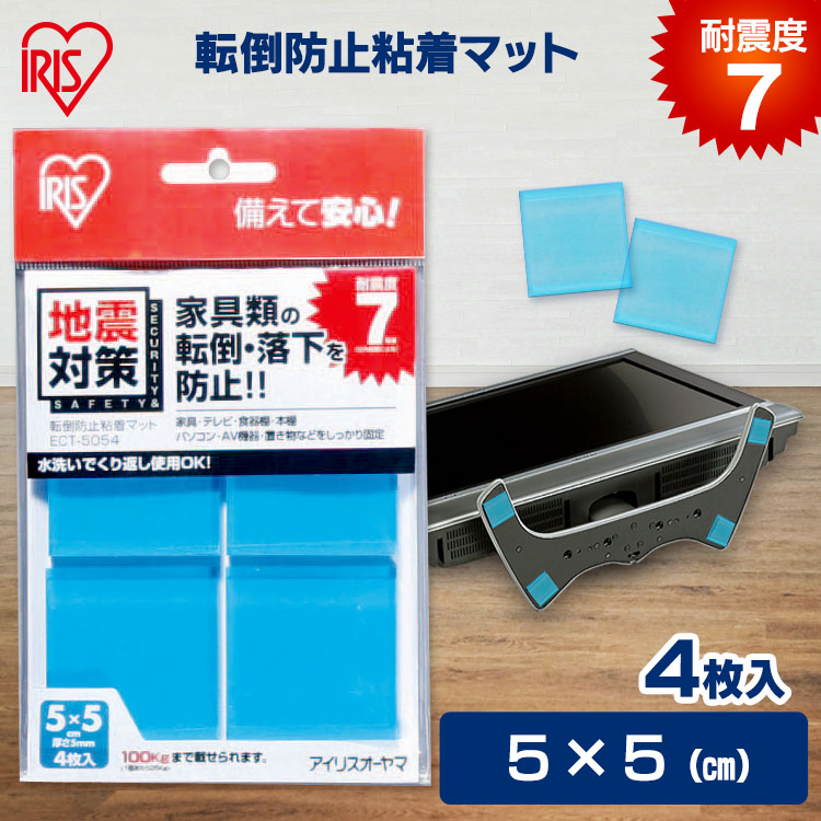 ■家具転倒防止マット 5×5cm 4枚入 耐震7程度 家具 棚 食器棚 本棚 テレビ パソコン AV機器 固定 転倒 落下防止 水洗い可 繰り返し使える