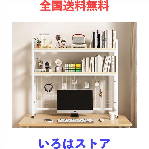 ◆商品名:本棚 おしゃれ 机上収納ラック 大容量 卓上 棚 2段 デスク上置棚 幅90cm×奥行20cm×高さ100cm ブラック 木製ラック (ホワイト, 90CM)