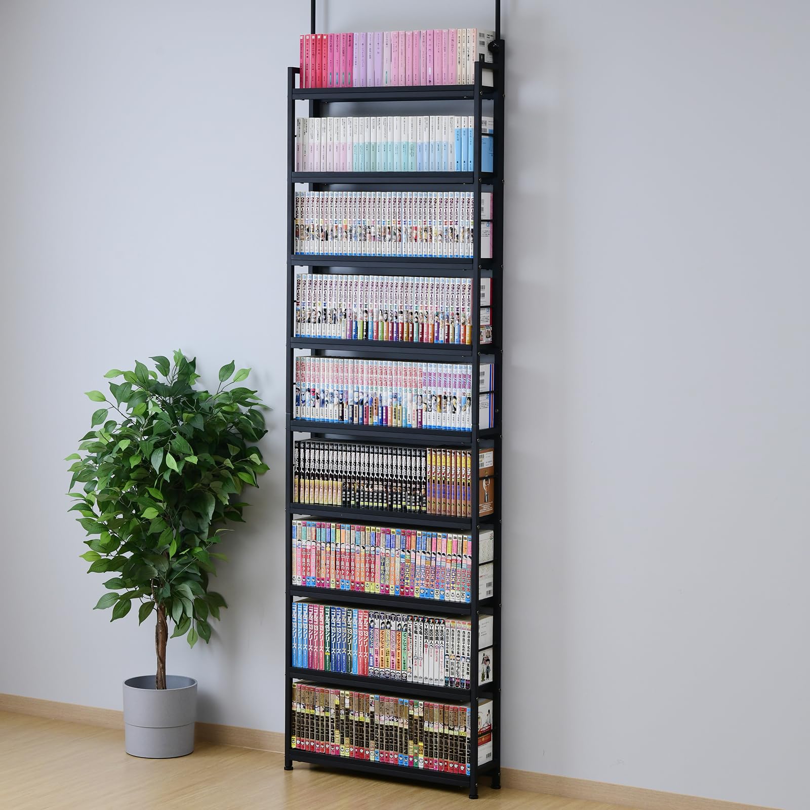 ■山善(YAMAZEN) 本棚 (突っ張り) 大容量 スリム 全体耐荷重180? 幅61×奥行15.5×高さ210.5-270? 壁面収納 ラック 組立品 ブラック RTRS