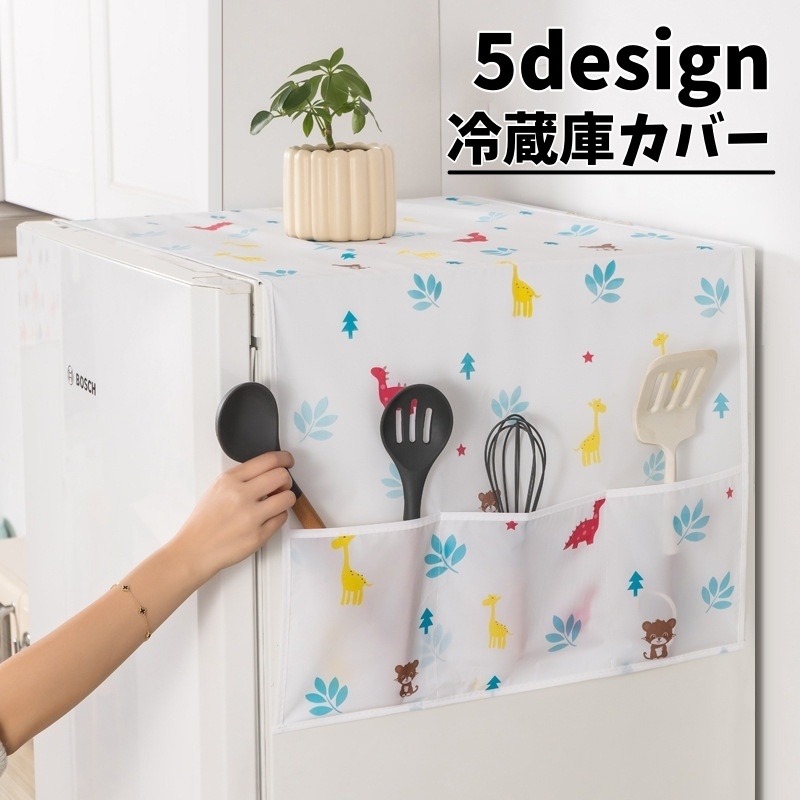 ■冷蔵庫カバー 収納ポケット付き ダストカバー 防塵 汚れ防止 防水 シンプル おしゃれ 可愛い イラスト 便利 小物入れ 本棚