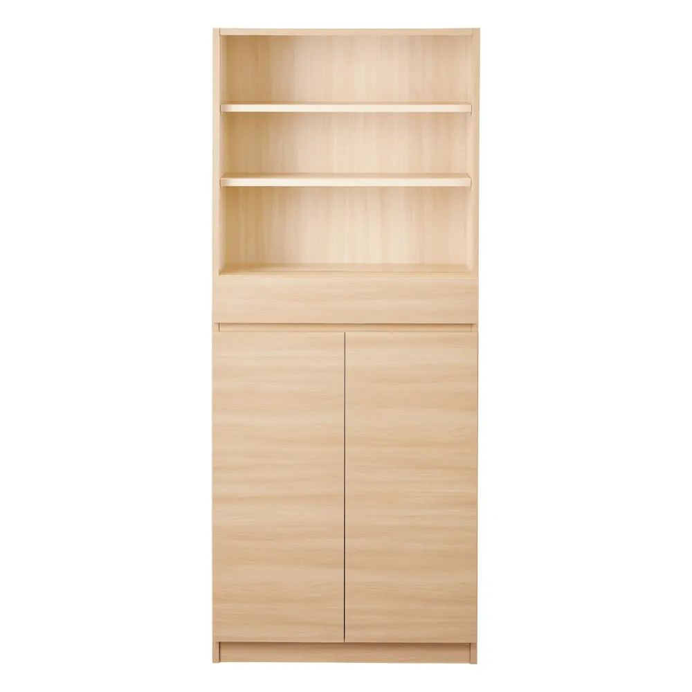 ■スイッチ避け壁面収納シリーズ 収納庫タイプ(上台オープン・下台扉・背板あり)幅75cm奥行30cm 本棚 ブックシェルフ 書棚 631466