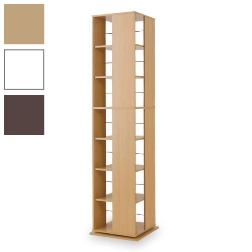 ■ラック 本棚 回転式 7段 幅39cm 奥行39cm 高さ159cm ナチュラル ブラウン ホワイト 大容量 コミック 漫画 本 CD 収納 スリム(代引不可)【