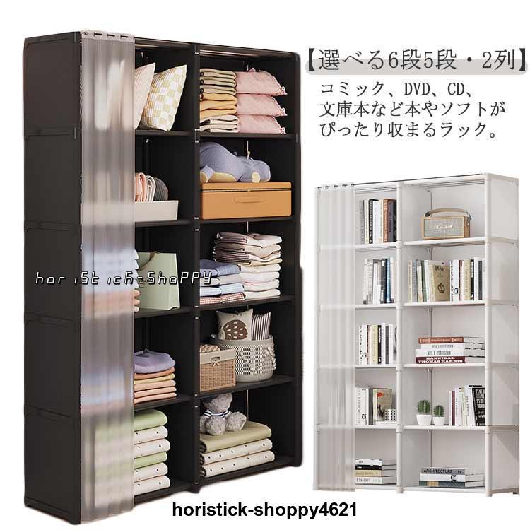 書棚 扉付き 5段 本棚 2列収納 大容量 6段 ラック コミックラック DVDラック 収納棚 収納ラック 収納ボックス おしゃれ 棚 絵CDラ