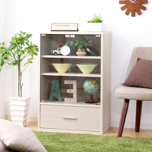 ■あす着 食器棚 おしゃれ 北欧 安い ガラス扉 4段 引き出し 引出し 本棚 キッチン カウンター 収納 可動棚 ラック レンジ台 ロータイプ コ