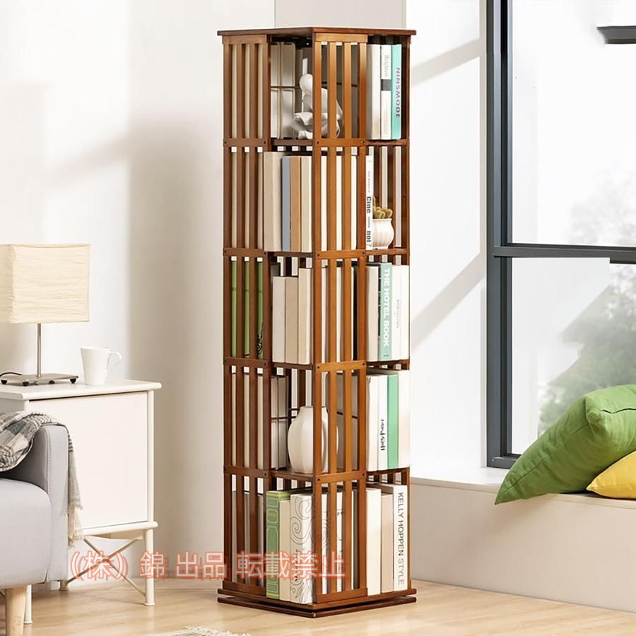 ■回転式 本棚 大容量 木製 コミックラック 4面 360度回転 納 回転棚 株式会社錦 スリム A4が入る高さ タワーラック 棚 隙間収納 すきま収
