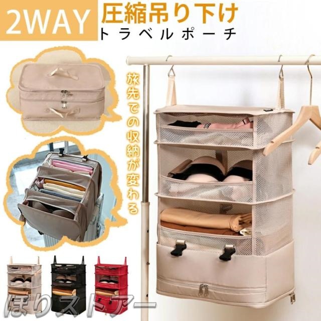■ほり改良版!吊り下げ収納 2way トラベルポーチ 圧縮バッグ トラベル バッグ 収納 衣類 クローゼット タオル 折りたたみ ランドリー ラッ