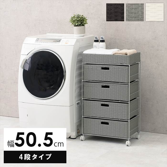 ■ランドリーラック 通販 RAN-2412 ランドリー収納 ランドリー ラック 引き出し 1列 4段 キャスター付き 水回り 収納 防水素材 大容量 洗面