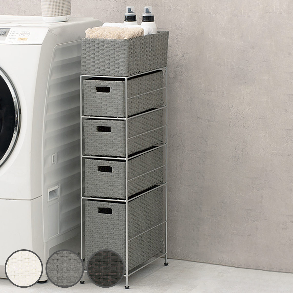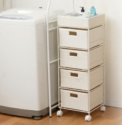 ■ランドリーチェスト 幅20.5cm 4段 スリムタイプ 引出し 隙間収納 完成品 ( ラタン調 ランドリー チェスト ラック 防水 撥水 収納 ラタン
