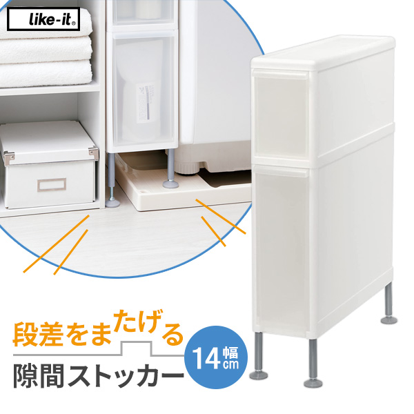 ■隙間収納 Like-it 段差をまたげる隙間ストッカー(2段) 幅14cm FTS-101A | ランドリー 隙間 収納 すきま 日本製 足の長さ調節 洗濯機