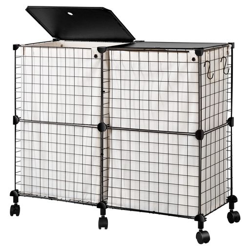 ■UZENN 144L ランドリーバスケット 蓋付き 洗濯カゴ 仕分け 大容量 キャスター付き ランドリー ボックス ワイヤーネット 洗濯物入れ 角型