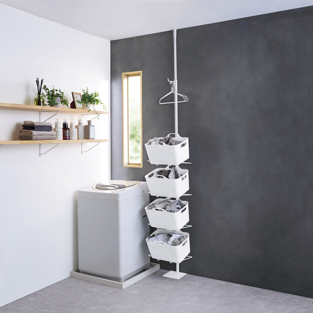 ■突っ張りランドリーバスケット バスケット4段フック1個タイプ トイレ 洗面所 ランドリー収納 ランドリー 洗濯かご 642131