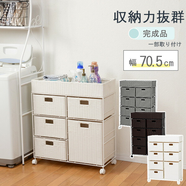 ■完成品 ランドリー 幅70cm RAN-2418 ダークブラウン ホワイト 引き出し 引出し ラック スリム チェスト 幅70 ランドリー キッチン ラック