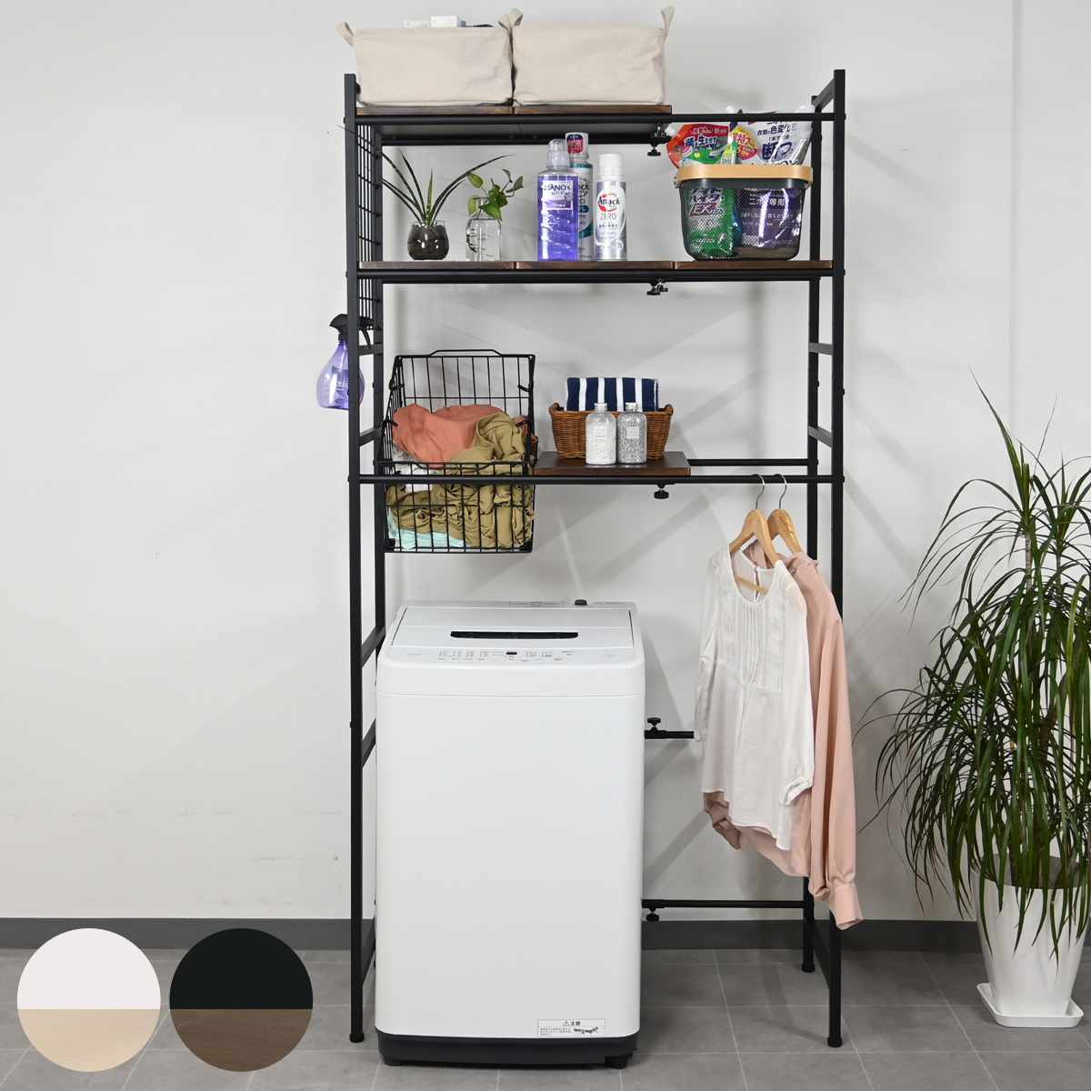 ■ランドリーラック 伸縮式 洗濯機棚 幅65〜95cm ( 洗濯機ラック ランドリー ラック 伸縮 ランドリー収納 可動棚付き 高さ調整 洗濯機上収