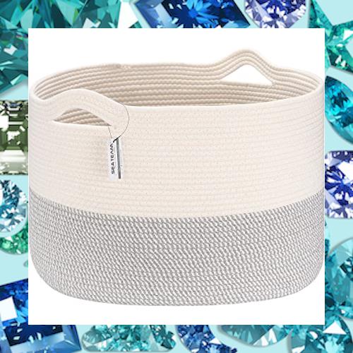 ■Sea Team ランドリー収納 コットンロープバスケット 収納かごバ スケット 持ち手付き ランドリー ランドリーバスケット 収納ボックス 洗