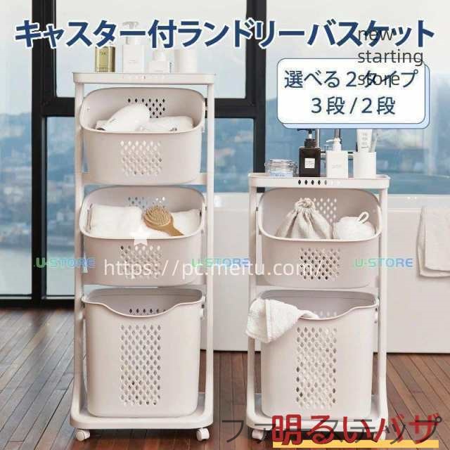 ■ランドリーバスケット 2段 3段 ランドリー バスケット カゴ ランドリーラック ランドス ランドリーワゴン キャスター付き 洗濯かご 洗濯