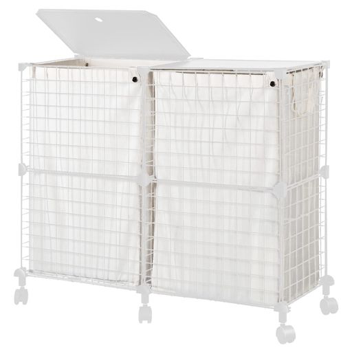 ■UZENN 144L メタル ランドリーバスケット 蓋付き 洗濯カゴ 仕分け 大容量 キャスター付き ランドリー ボックス ワイヤーネット 洗濯物入