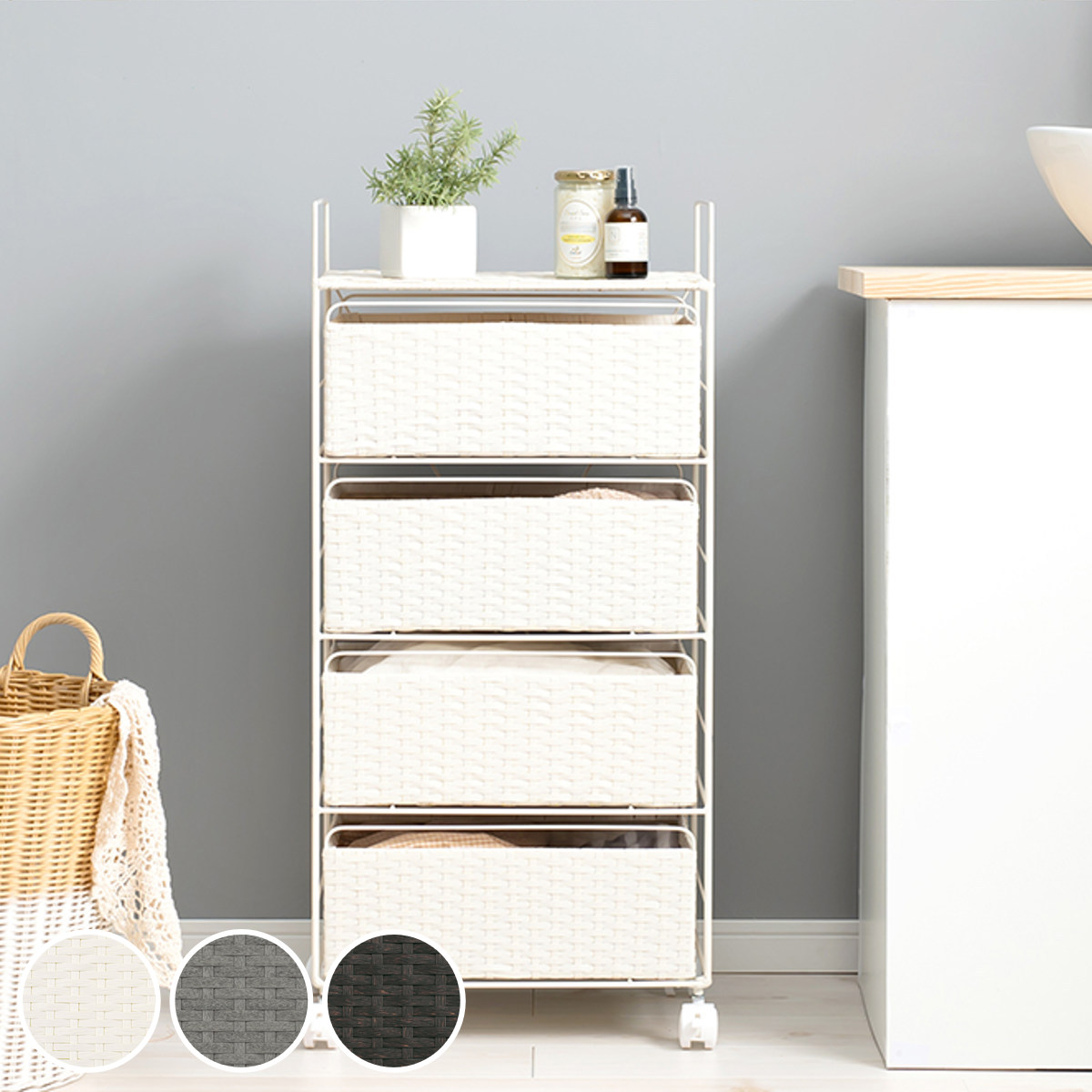 ■ランドリーチェスト 4段 幅40cm 高さ85cm キャスター付 引出し スチール ポリエチレン ( ラタン調 ランドリー チェスト ラック 防水 ア