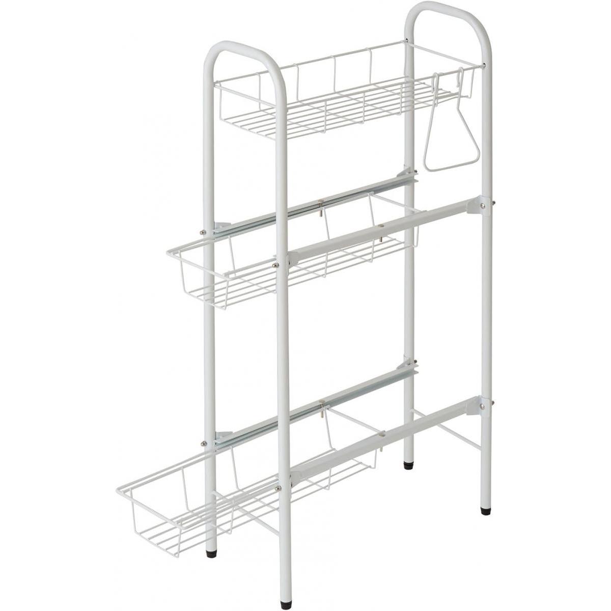 【商品説明】キッチンや洗面所の隙間に収納できるコンセント付きスリムワゴン■サイズ:約幅20×奥行31×高さ79cm■重量:約10.5kg■生産国:中国■材質:天板・前面=合成樹脂化粧繊維板、他=プリント紙化粧繊維板■仕様:完成品
