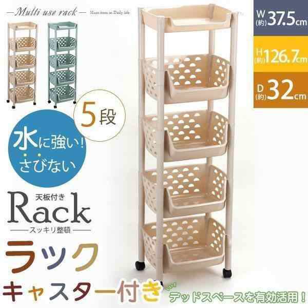 ■ワゴン キャスター付き スリム 5段 プラスチック 隙間収納 キッチンラック 野菜ストッカー バスケットラック 収納棚 ランドリー 台所 洗