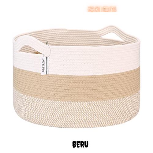 ■Sea Team ランドリー収納 コットンロープバスケット 収納かごバ スケット 持ち手付き ランドリー ランドリーバスケット 収納ボックス 洗