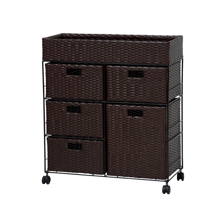 ランドリーワゴン ランドリーラック ラタン調 取っ手 キャスター付き 幅40cm 高さ80cm ランドリー 収納ラック バスケット スチールフレーム ランドリーボックス 整理棚 衣類収納