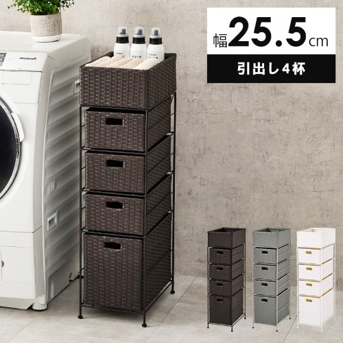 ■Laundry Storage ランドリーチェスト 幅20.5cm スリム 引出し4杯 (チェスト ランドリー スリム スチール 通気性 引き出し 防水 ラタン調