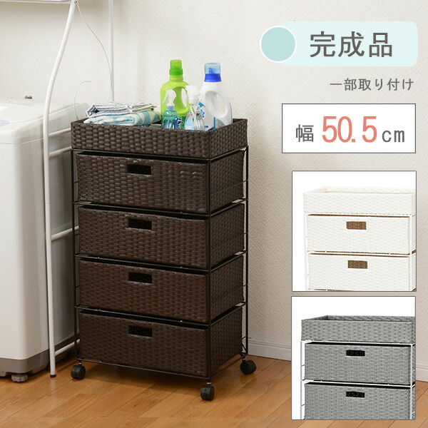 ■ランドリーチェスト 4段 幅50cm 高さ85cm キャスター付 引出し スチール ポリエチレン ( ラタン調 ランドリー チェスト ラック 防水 ア