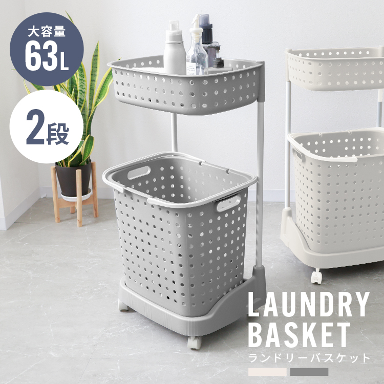 ■ランドリーバスケット 2段 ランドリー バスケット 63L カゴ ランドリーラック ランドリーボックス ランドリーワゴン 洗濯かご 洗濯カゴ