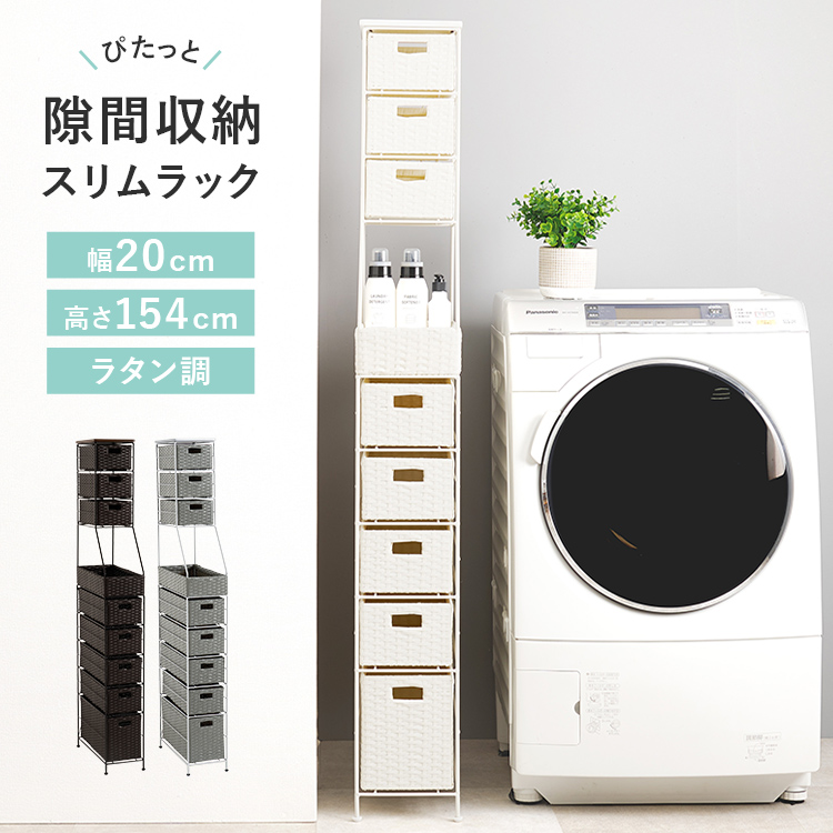 隙間収納 の オススメPOINT ■便利な隙間収納 幅14cmのスリムな縦型ワゴンなので、ちょっとしたスペースや家具、冷蔵庫横の隙間などに置けます。 場所を取らずにたっぷり収納できるのでうれしい♪ ■5段の引き出し付き 幅13.5cm×高さ100cm×奥行43.5cmの縦長収納。 5段の引き出しに分けて収納できるので整理整頓できて使いやすい! ■たっぷり収納 5段バスケットのキッチンワゴンは、お菓子や保存食品や飲料などたくさん収まる収納グッズです。 ■ランドリー収納に 洗濯機横に置ける約幅14cmの隙間収納ラック。 バスルームや洗面所などの収納にも使用できます。 ■キッチン収納に スリムなマルチワゴンがあれば、食器、シリアルなどの保存食、調理器具、台所用品がきちんとおさまります。 ■ダイニングに カトラリーやグラス、調味料やお酒、お茶やコーヒーなどを入れてダイニングに置けば取りに行かずにすんでとても便利! ■玄関の整理