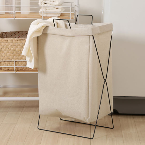 おしゃれな北欧風ランドリーボックスです。 バス用品や脱衣かご、洗面所、脱衣所収納に便利! 全体:幅37×奥行27×高さ60cm 素材綿/麻/スチール
