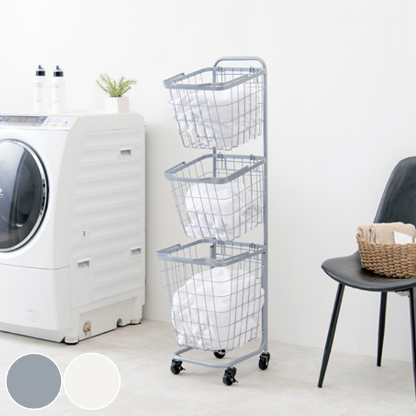 ■ランドリーワゴン 3段 スリム 幅35cm スクエアバスケット ランドリーラック バスケット付 角型 ( ランドリーバスケット 洗濯 ランドリー