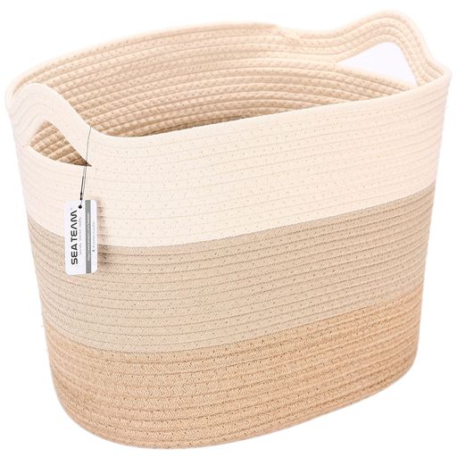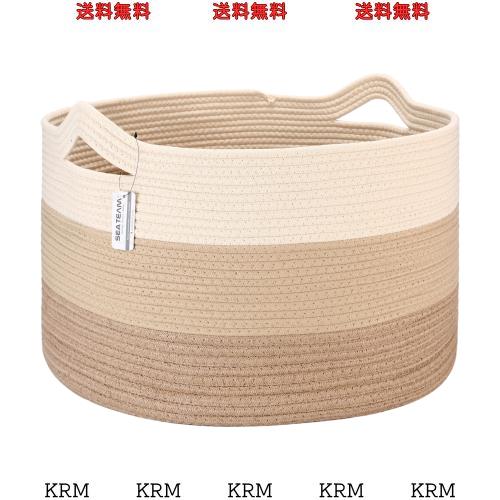 ■SEA TEAM 大きいサイズ 収納バスケット 洗濯かご ランドリー コットンロープ 持ち手付き ランドリー ナチュラル 赤ちゃん 子供用品収納