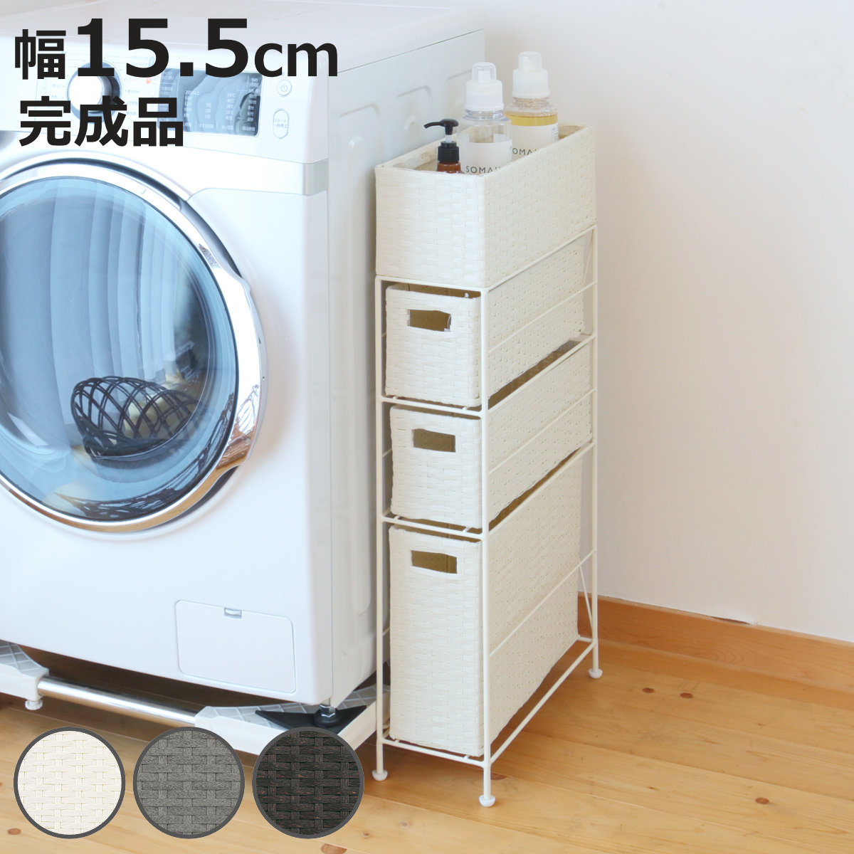 ■ランドリーチェスト 引出し3杯 幅15.5cm スリム かご付 スチール ポリエチレン ( ラタン調 ランドリー チェスト ラック 防水 アジアン