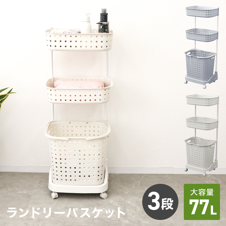 ■ランドリーバスケット 3段 キャスター付き ランドリー バスケット カゴ ランドリーラック ランドリーボックス 洗濯かご 洗濯カゴ 洗濯物